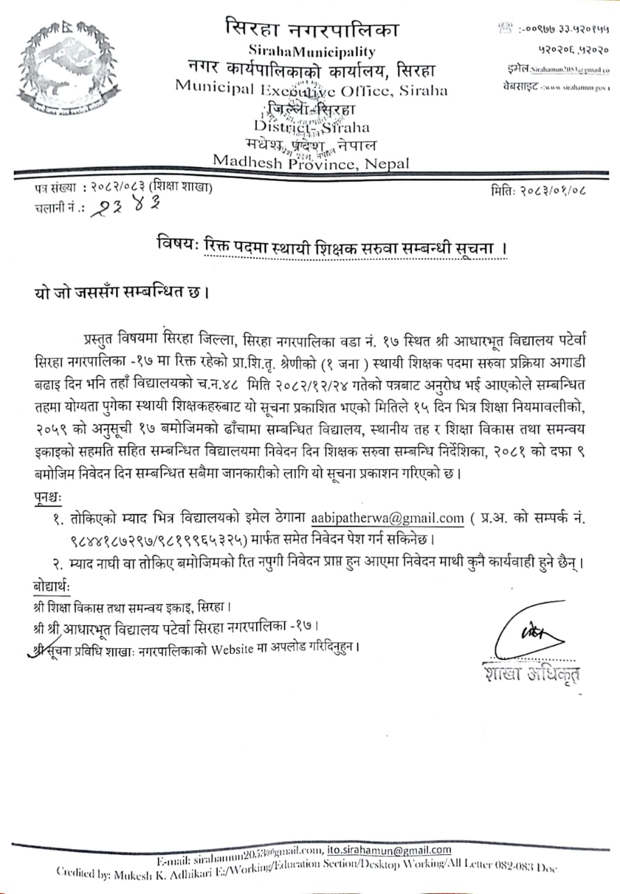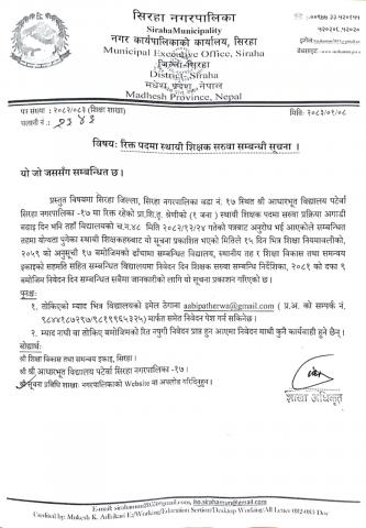रिक्त पदमा स्थायी शिक्षक सरूवा सम्बन्धी सूचना ।