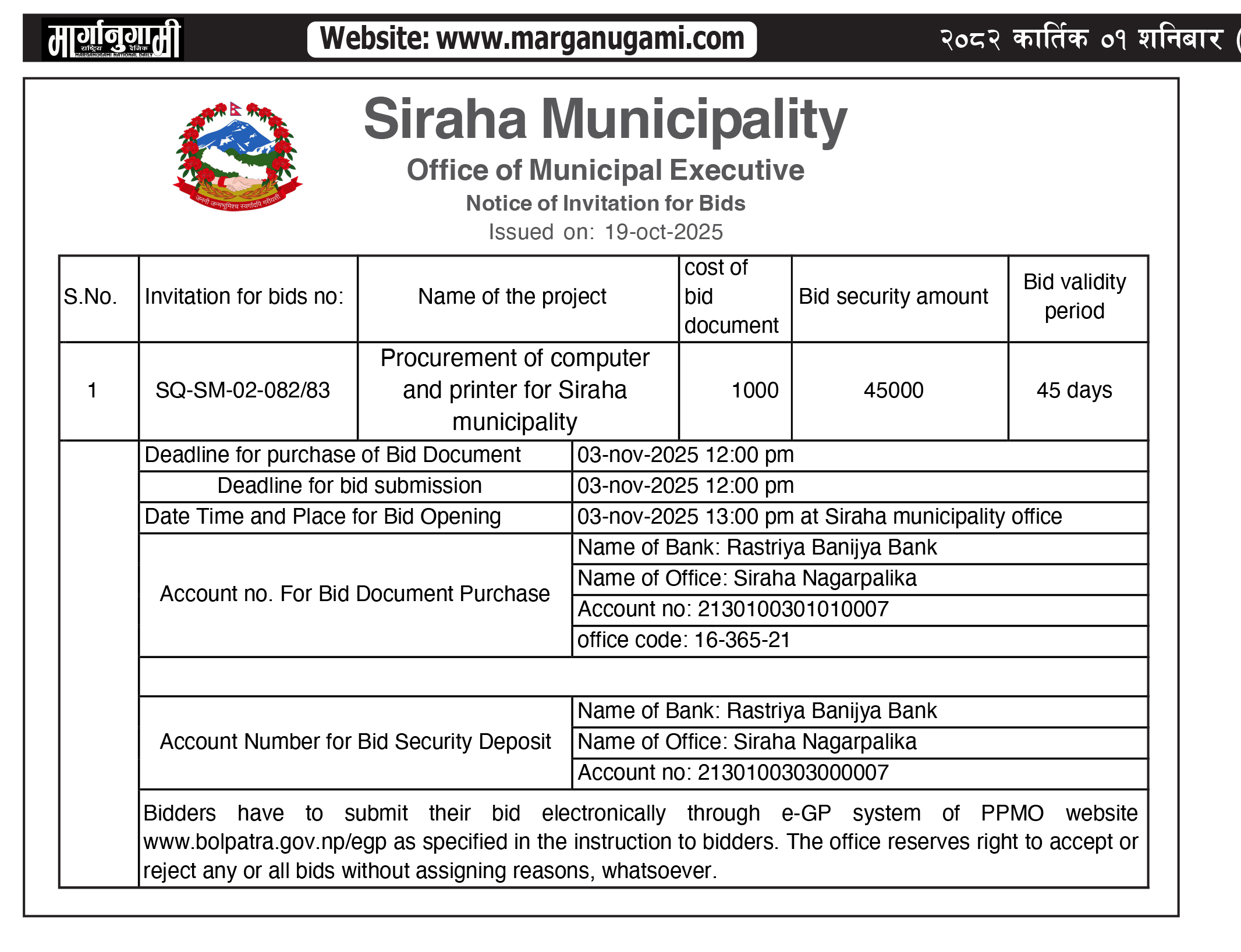 कम्प्युटर र प्रिन्टर खरिद सम्बन्धी सूचना।