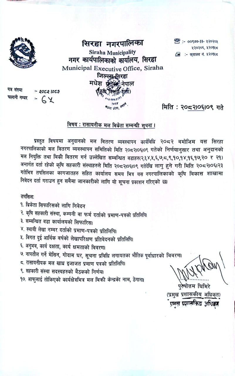 नगरपालिका कार्यालय सम्पर्क विवरण