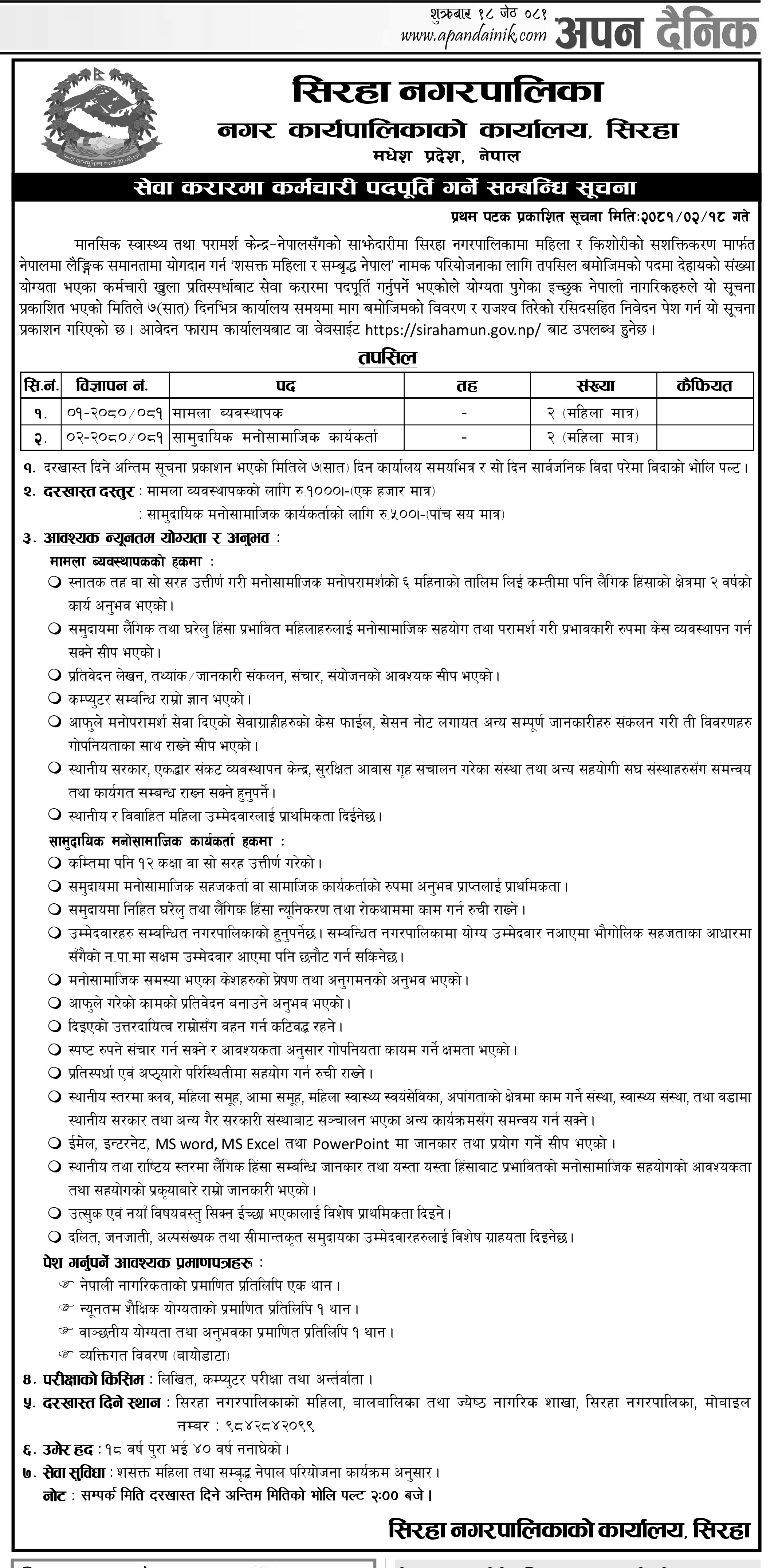 sirahamun2053@gmail.com, info@sirahamun.gov.np